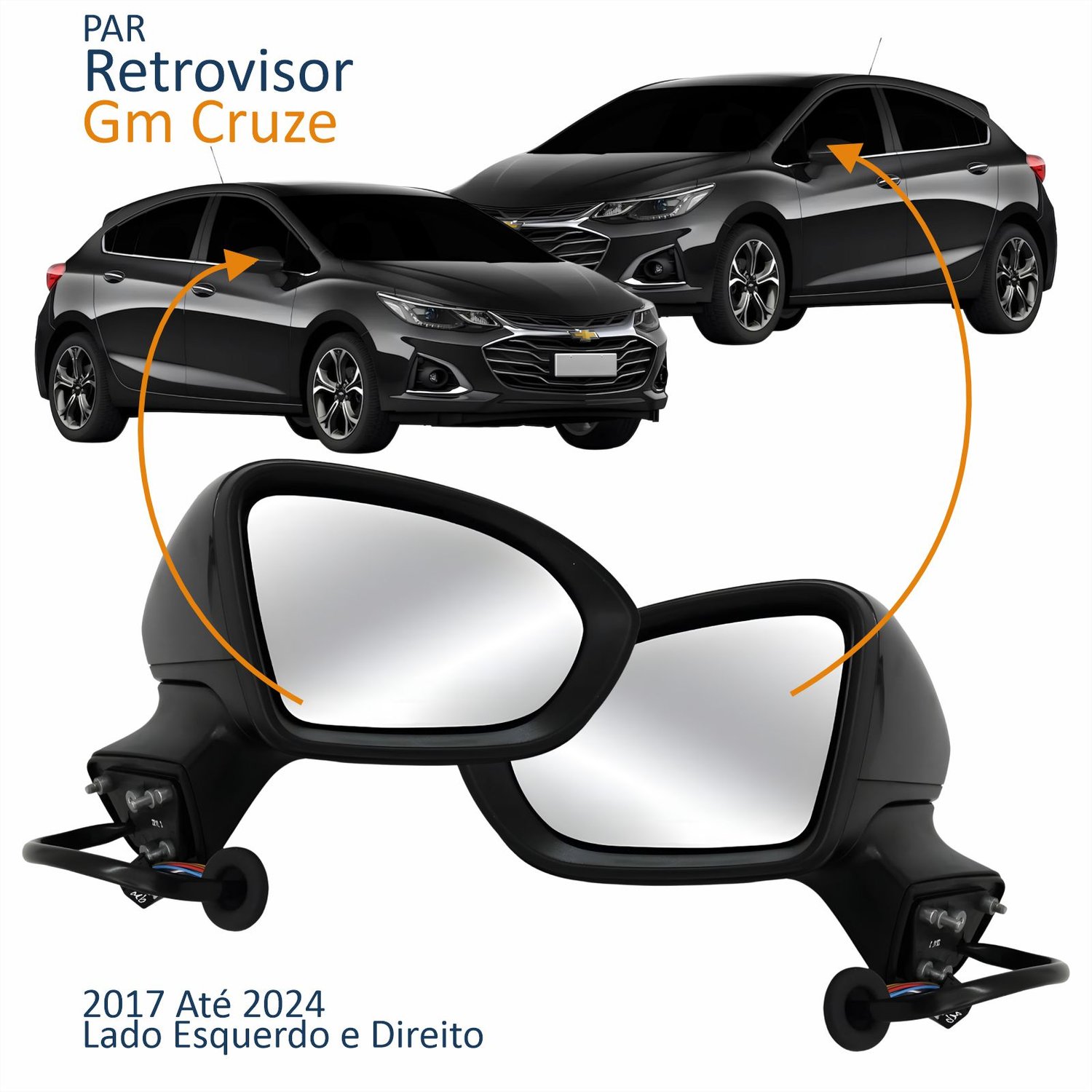 Par Retrovisor Gm Cruze 2017 Até 2024 Elétrico Com 3 Fios