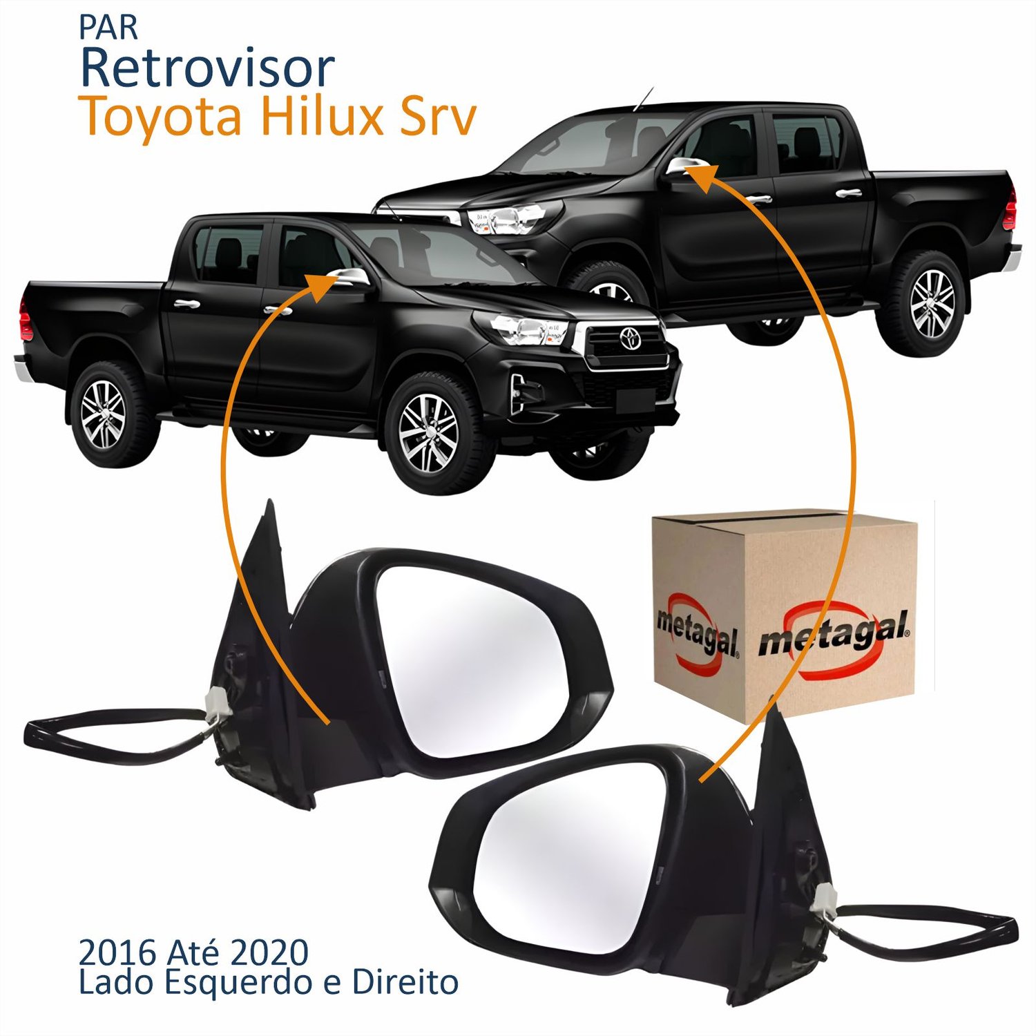 Par Retrovisor Toyota Hilux Srv 2016 2017 2018 2019 2020 Elétrico Com Pisca Capa Cromada Original