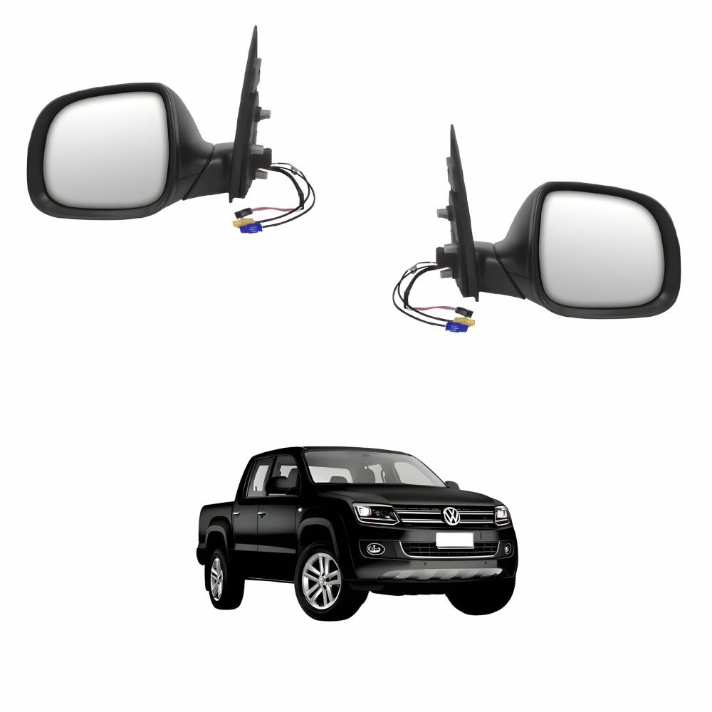 Par Retrovisor Vw Amarok 2010 Até 2018 Eletrico Conector Preto Com Foldway