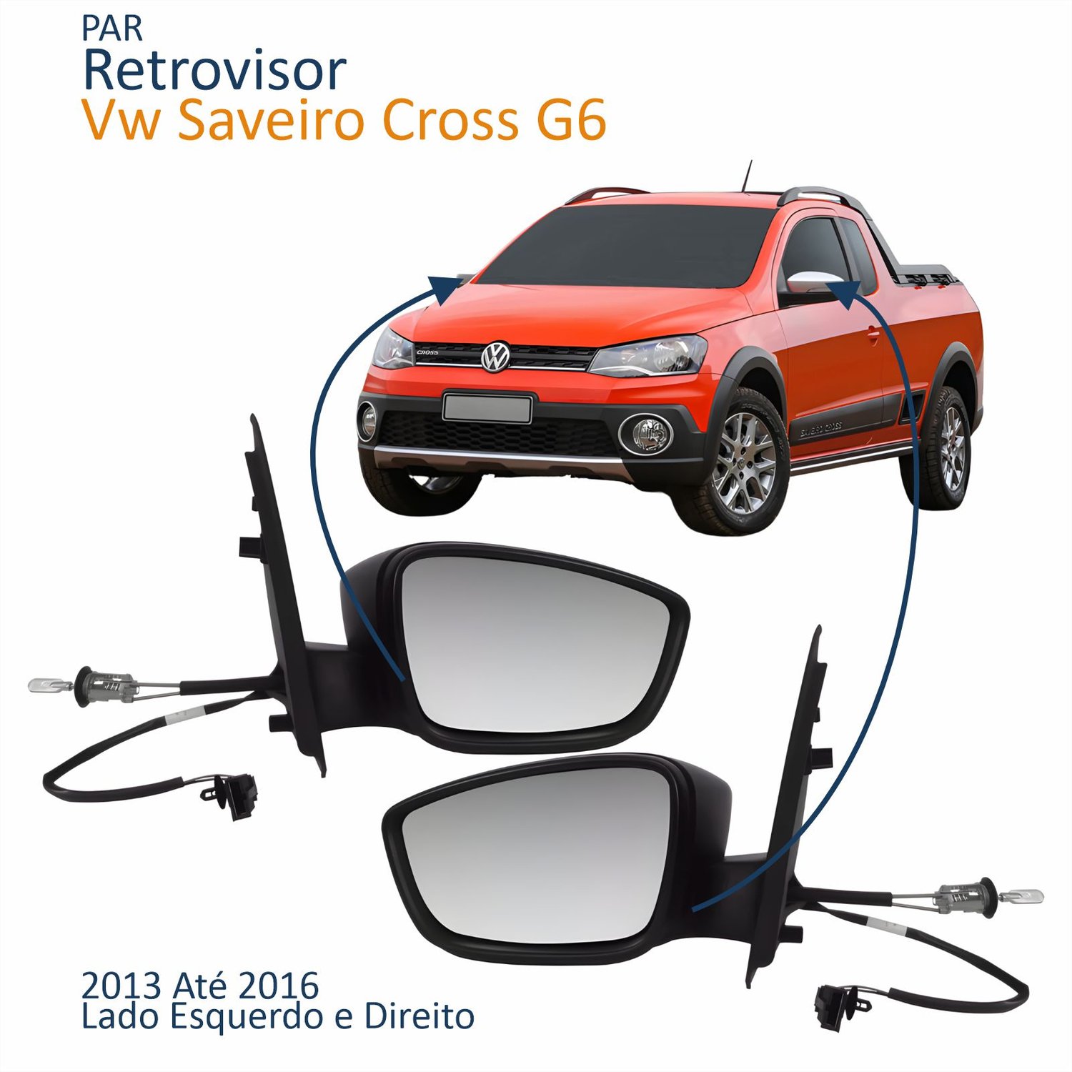 Retrovisor Vw Saveiro Cross G5 2010 Até 2013 G6 2013 Até 2016 Com Controle Com Pisca Lado Esquerdo Motorista Original Quant: 1xRetrovisor Vw Saveiro Cross G5 2010 Até 2013 G6 2013 Até 2016 Com Controle Com Pisca Lado Direito Passageiro Original Quant: 1x