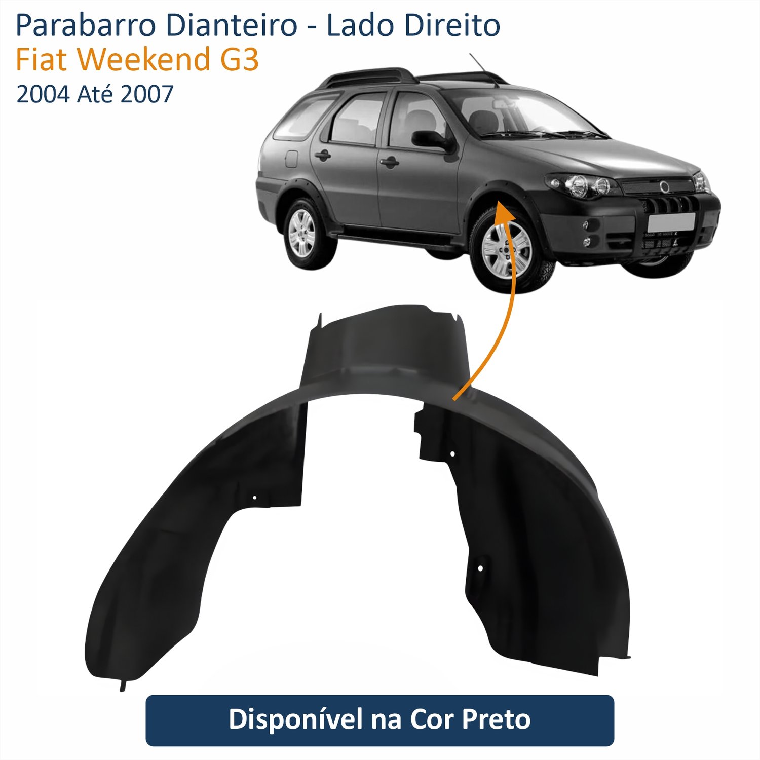 Parabarro Dianteiro Fiat Palio Strada G3 2004 Até 2014 Siena Weekend G3 2004 Até 2007 Lado Direito PassageiroLado: Único