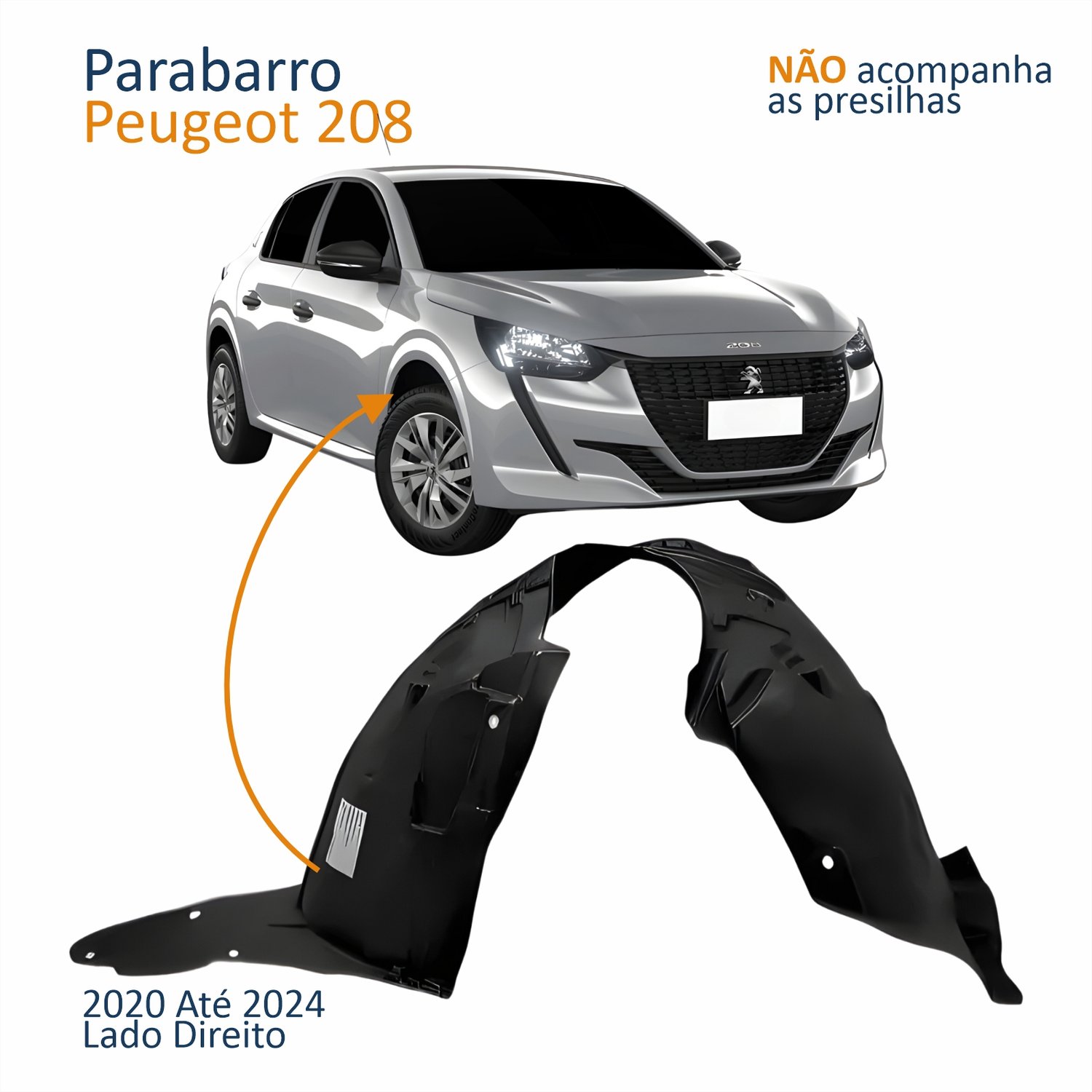Parabarro Dianteiro Peugeot 208 2020 2021 2022 2023 2024 Lado Direito Passageiro