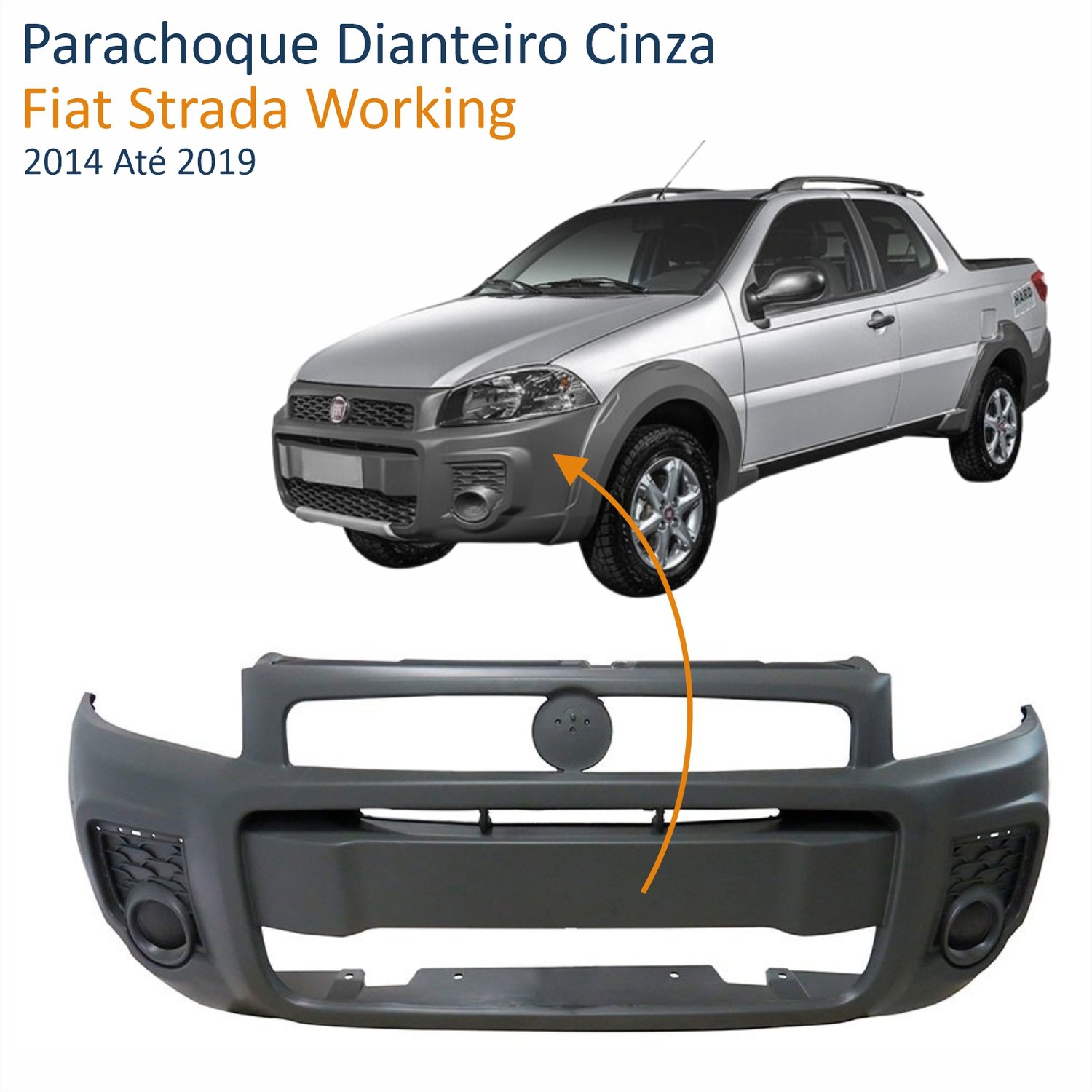 Parachoque Dianteiro Cinza Fiat Strada Working 2014 Até 2019 Sem Furo