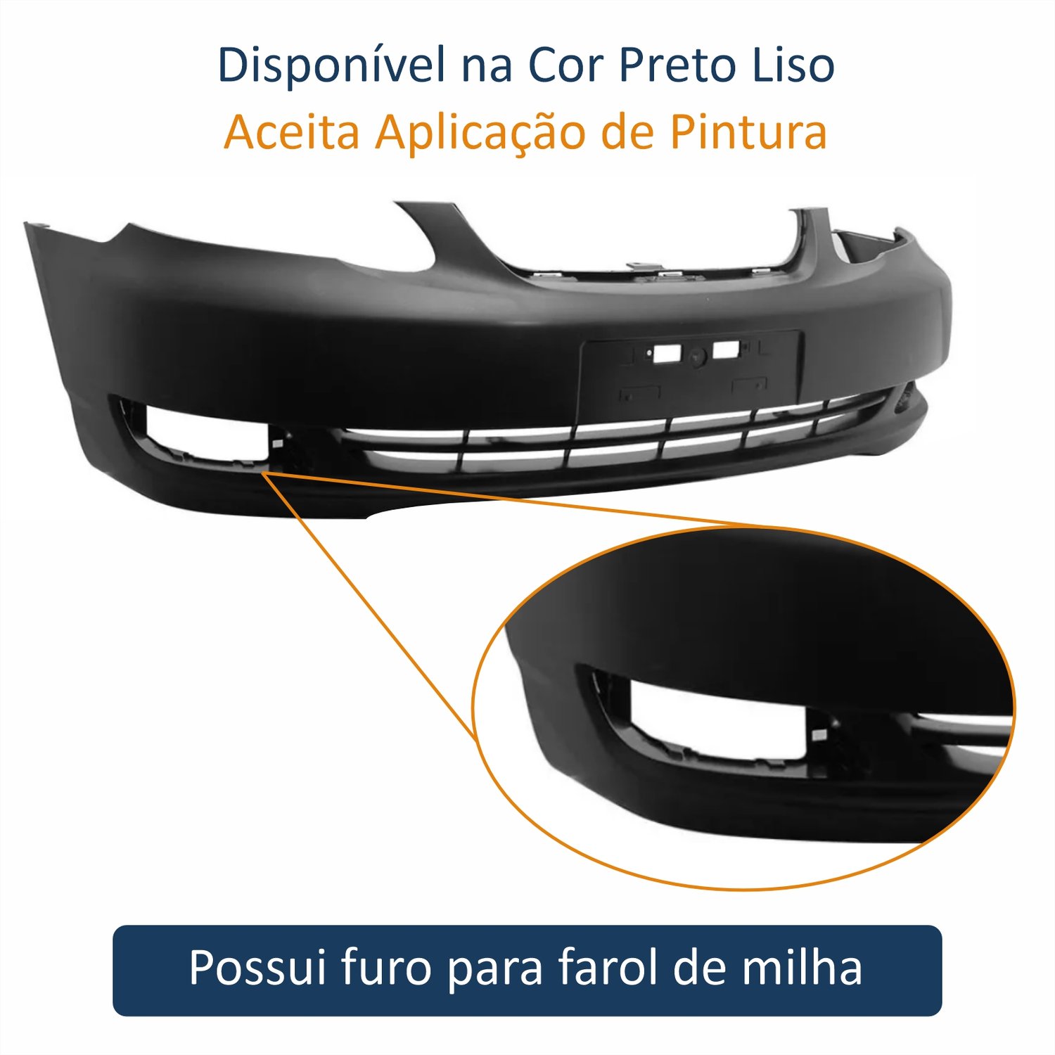 - Possui furo para farol de milha