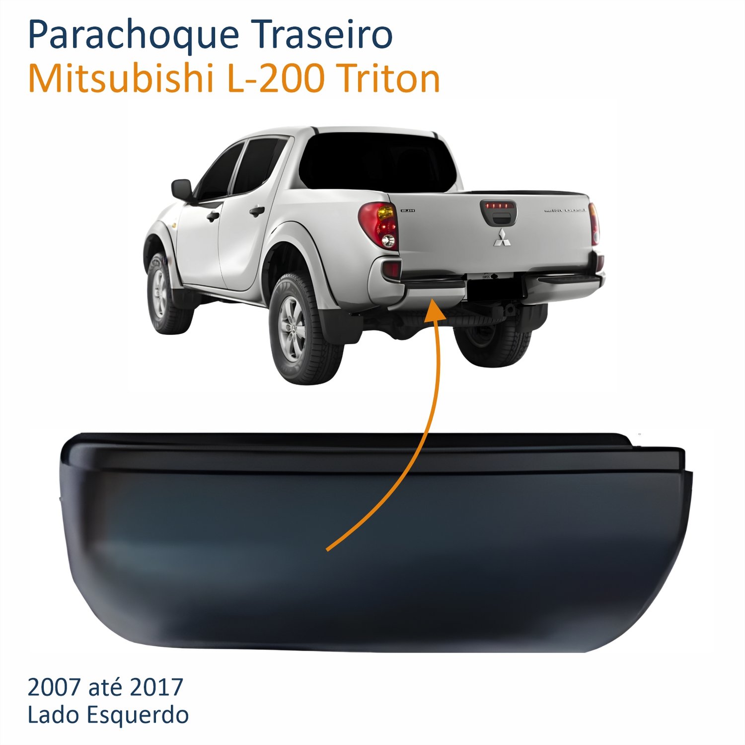 Parachoque Traseiro Mitsubishi L-200 Triton 2007 Até 2017 Sem Pisante Lado Esquerdo Motorista