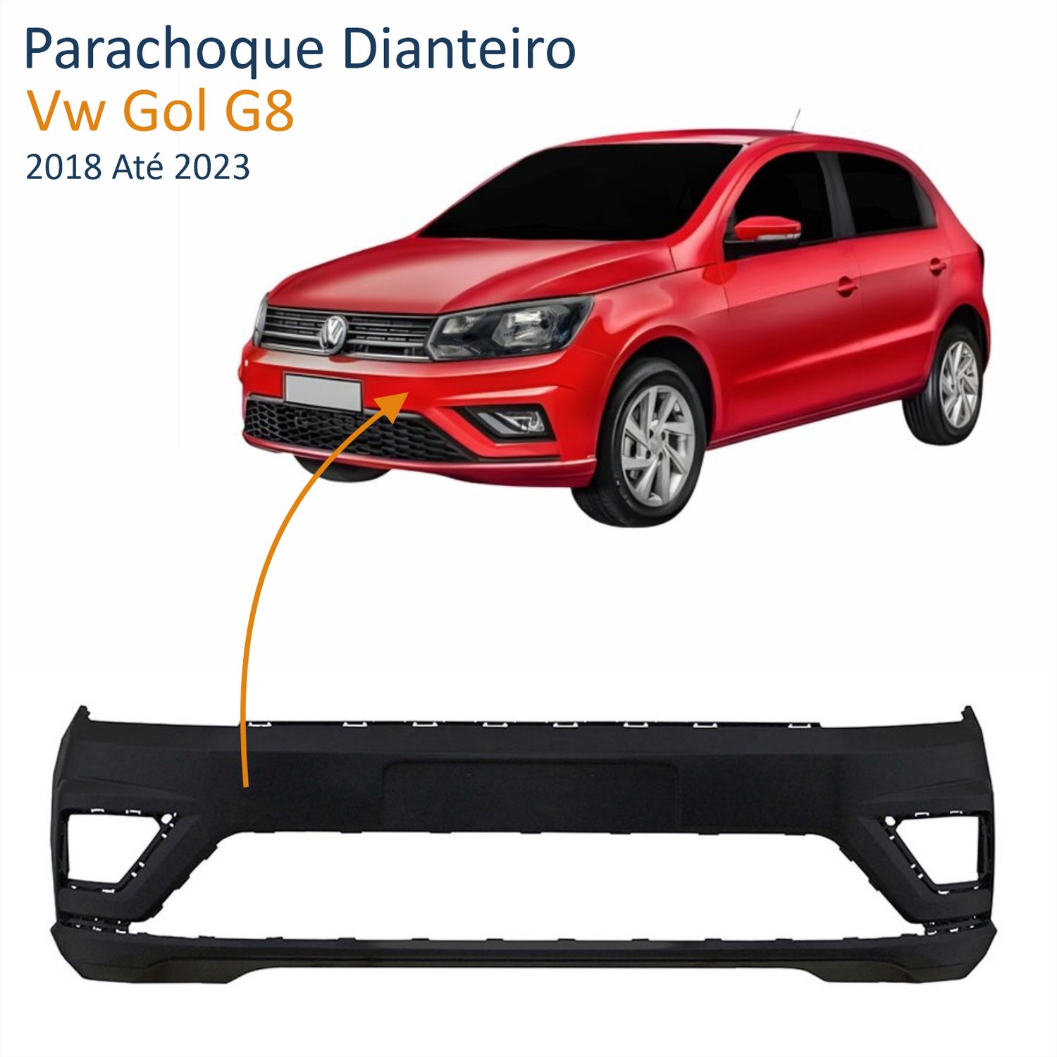 Parachoque Vw Gol G8 2018 Até 2023 Dianteiro Preto Liso com Furo para Milha