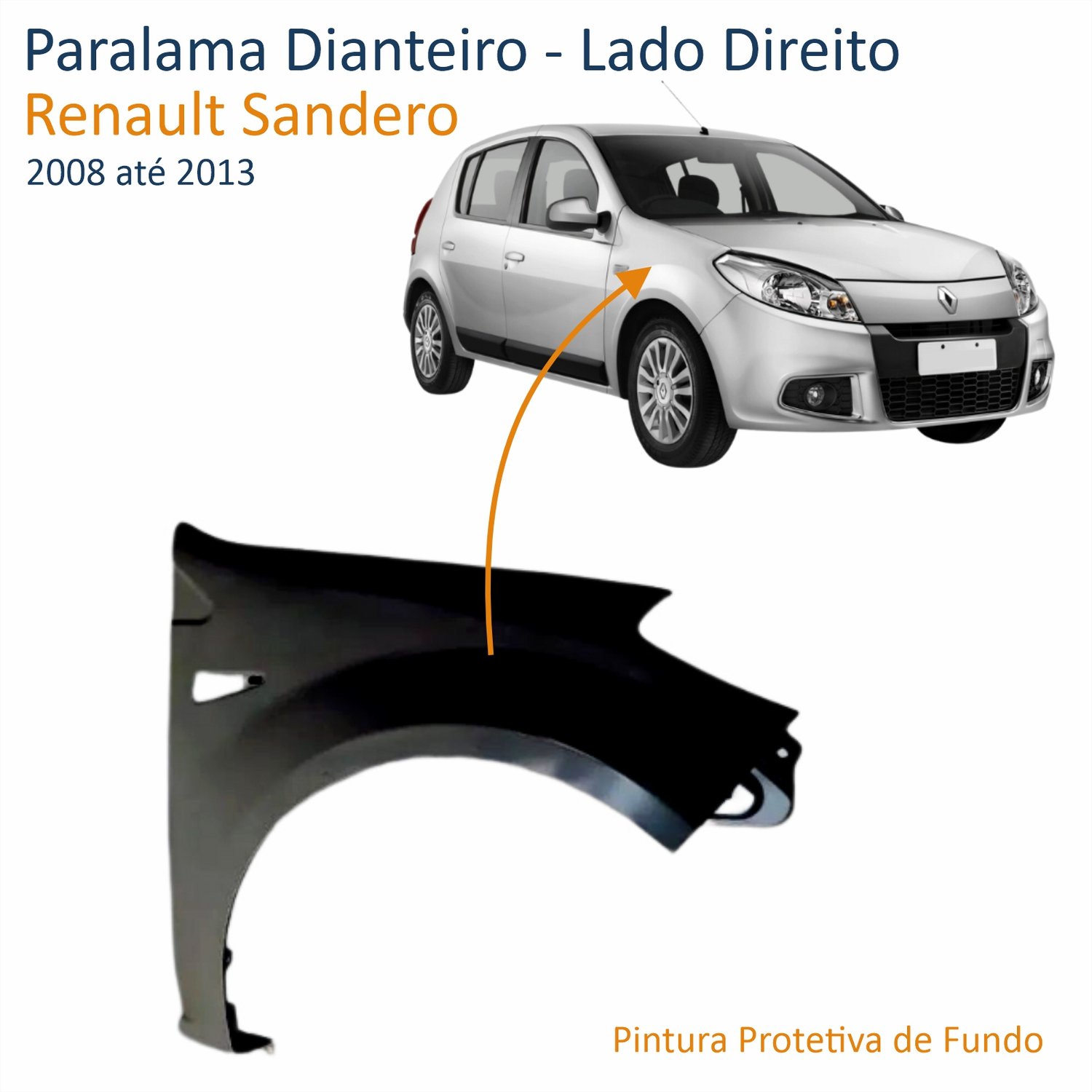 Paralama Dianteiro Renault Sandero 2008 até 2013 Lado Direito Passageiro