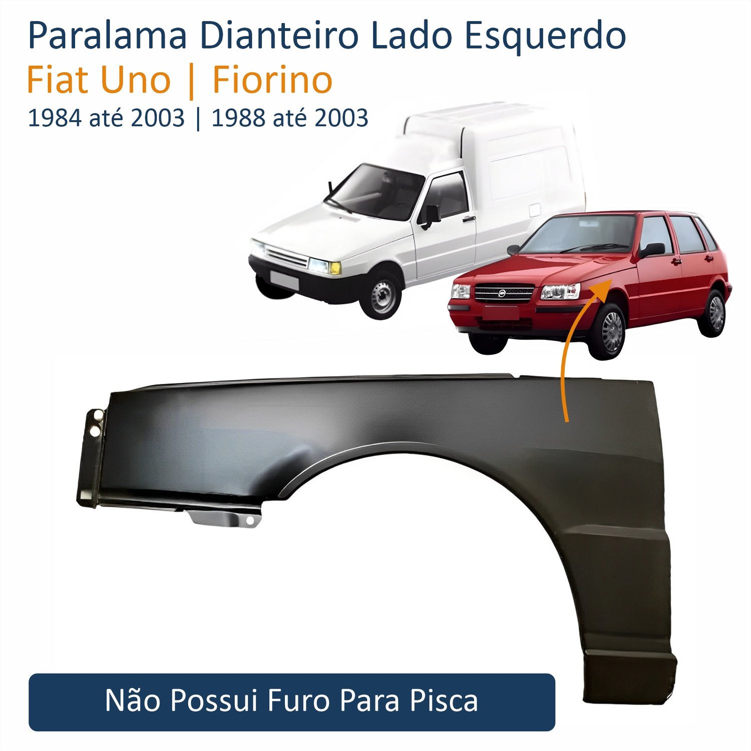 Paralama Fiat Uno Fiorino 1984 até 2003 Sem furo Lado Esquerdo Motorista
