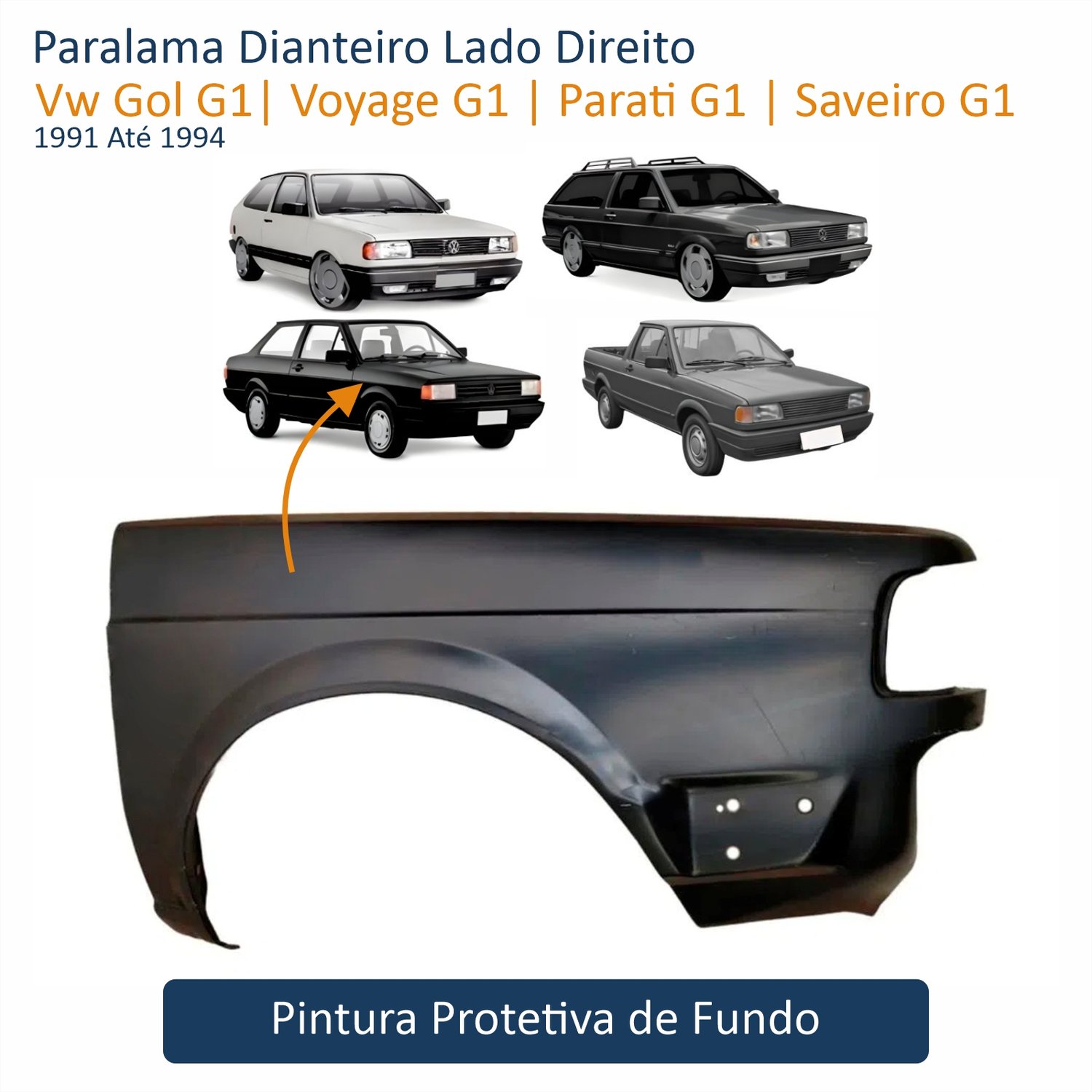 Paralama Vw Gol Voyage Parati Saveiro G1 1991 Até 1994 Lado Direito Passageiro