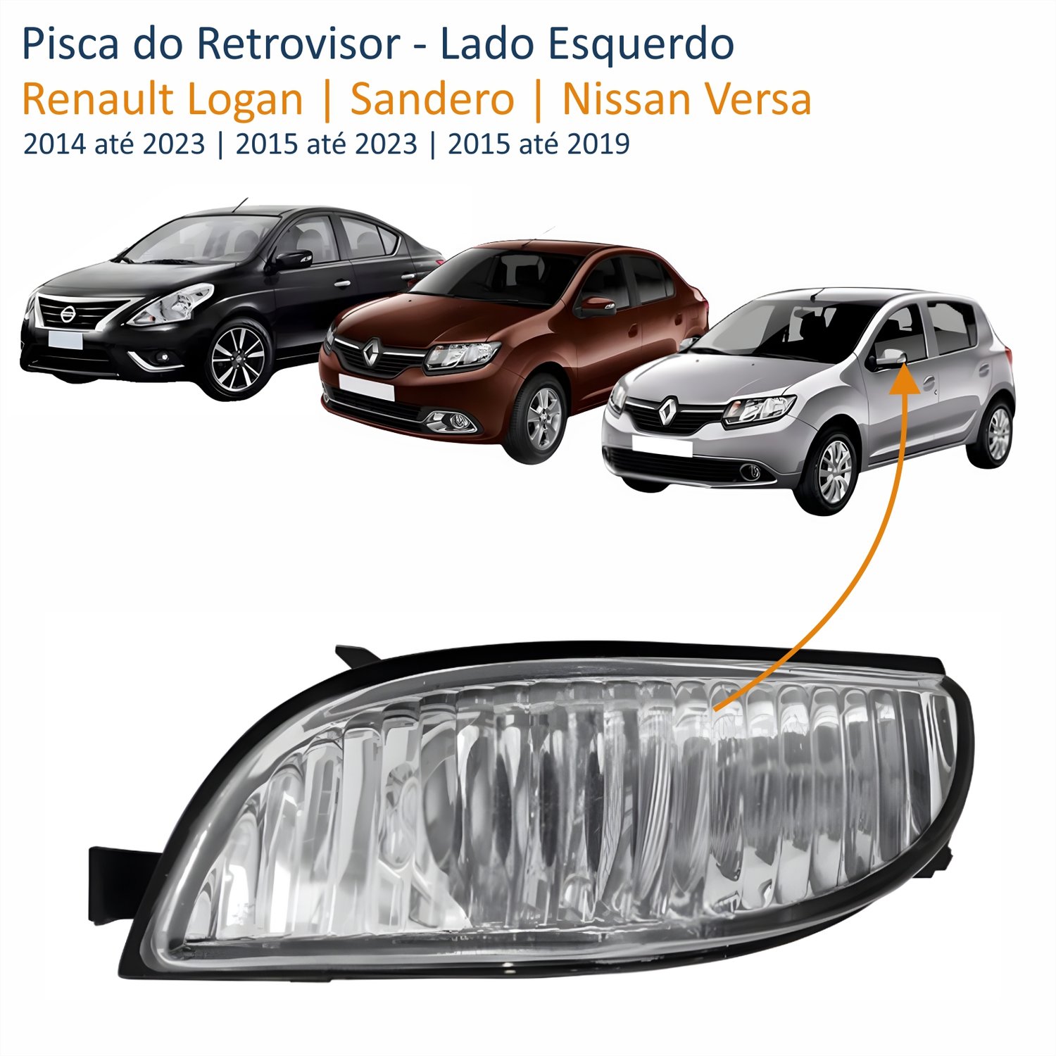 Pisca do Retrovisor Renault Logan 2014 até 2023 Sandero 2015 até 2023 Nissan Versa 2015 até 2019 Lado Esquerdo Motorista