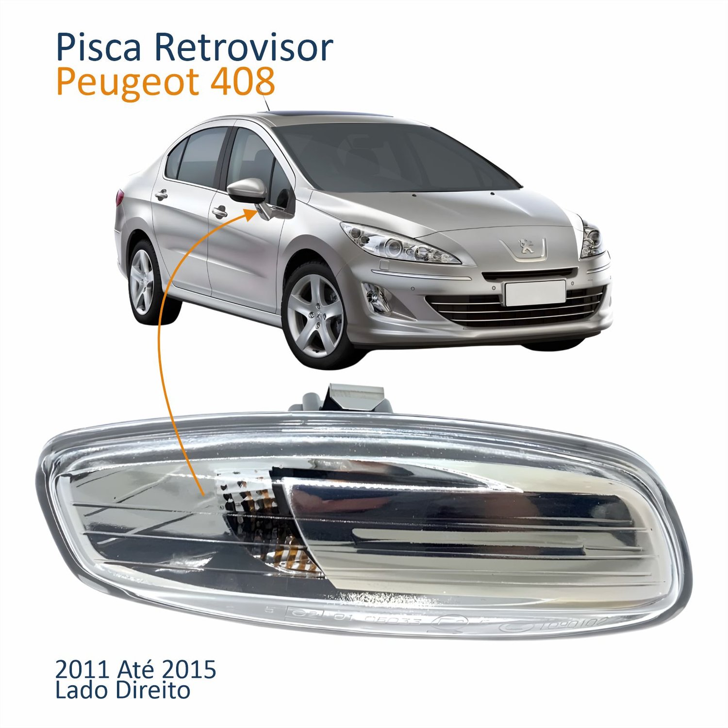 Pisca Retrovisor Peugeot 308 408 2011 2012 2013 2014 2015 Lado Direito PassageiroTamanho: Único