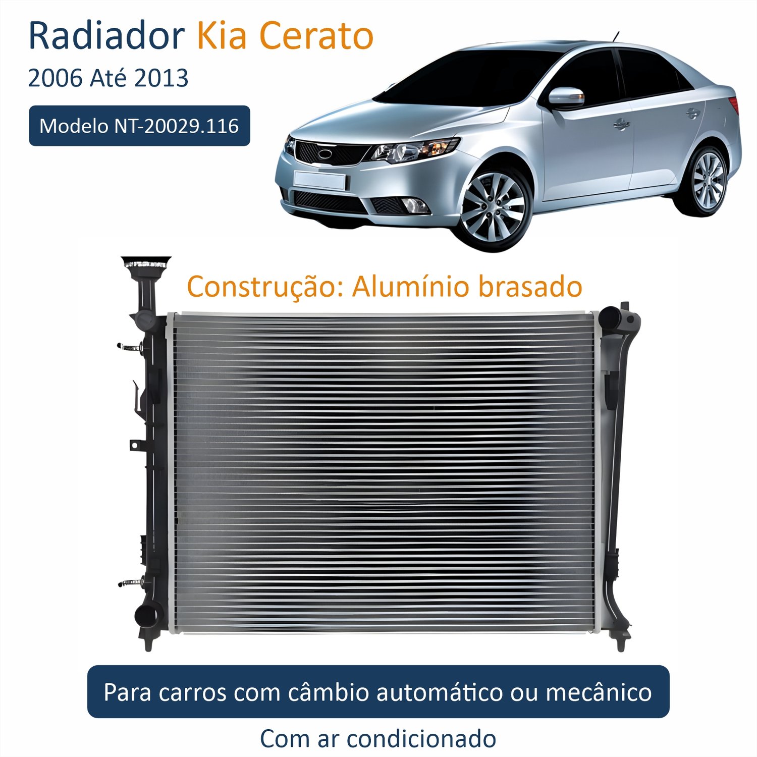 Radiador Kia Cerato 2006 Até 2013 Com Ar Condicionado Automático E Mecânico