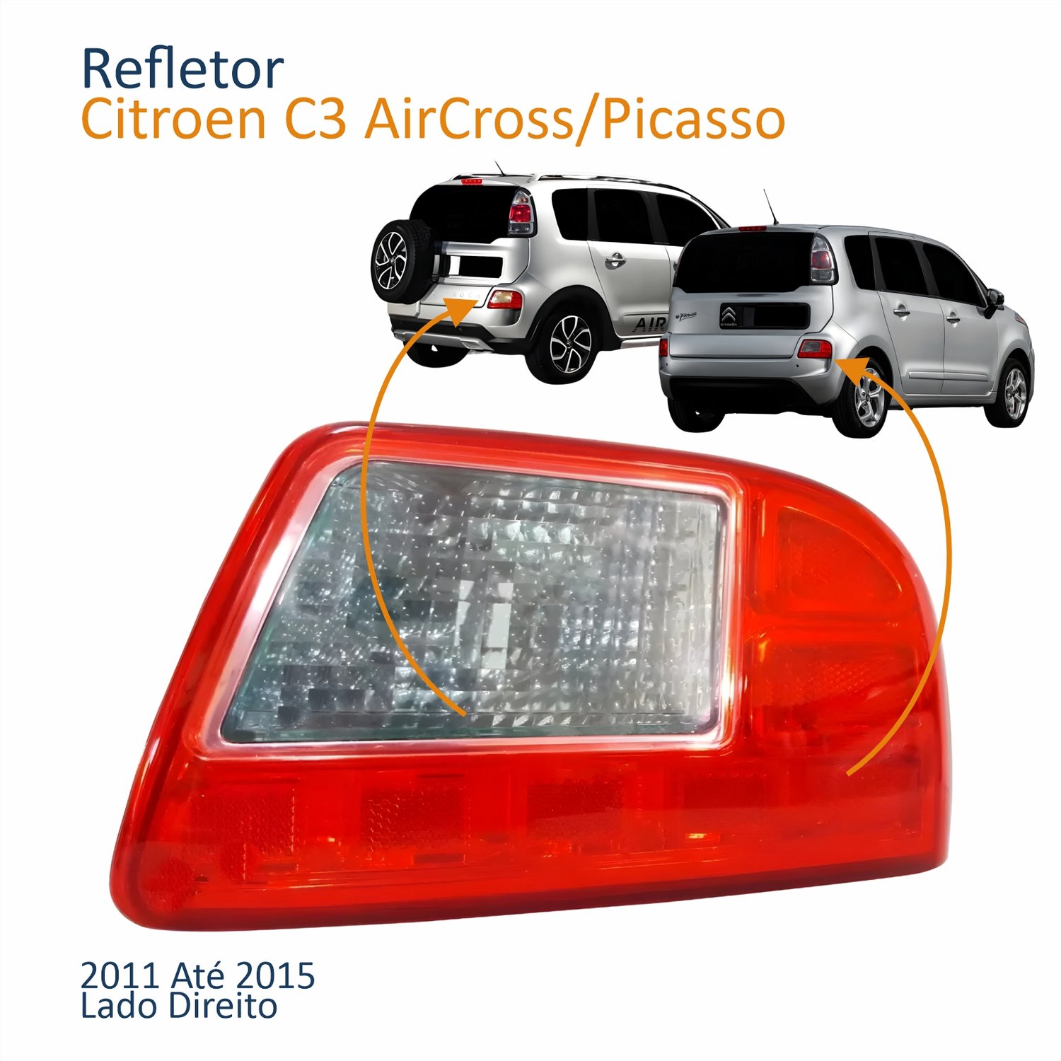 Refletor Traseiro Parachoque Citroen C3 Aircross Picasso 2011 Até 2015 Vermelho Cristal Lado Direito Passageiro