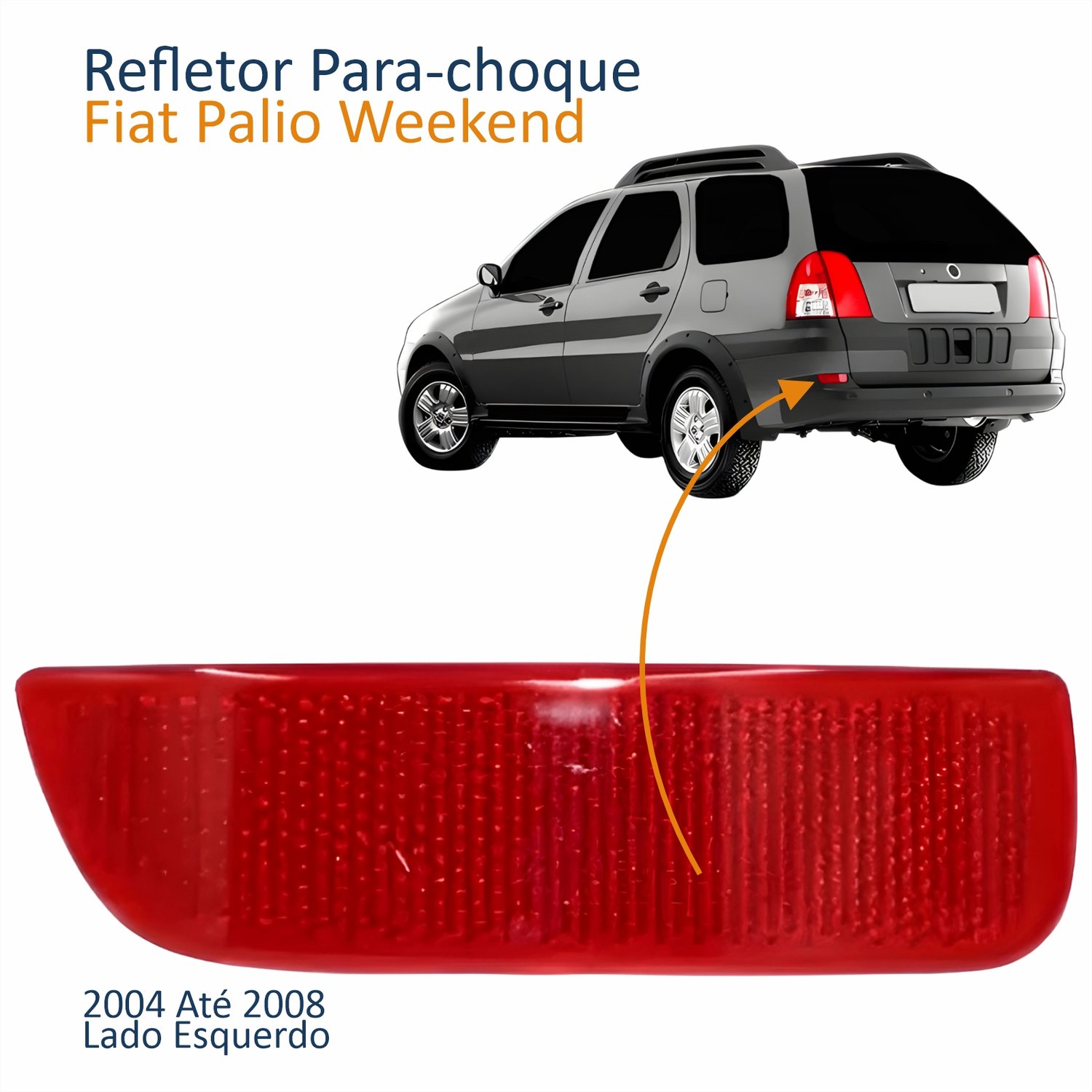 Refletor Traseiro Parachoque Fiat Palio Weekend 2004 Até 2008 Lado Esquerdo Motorista