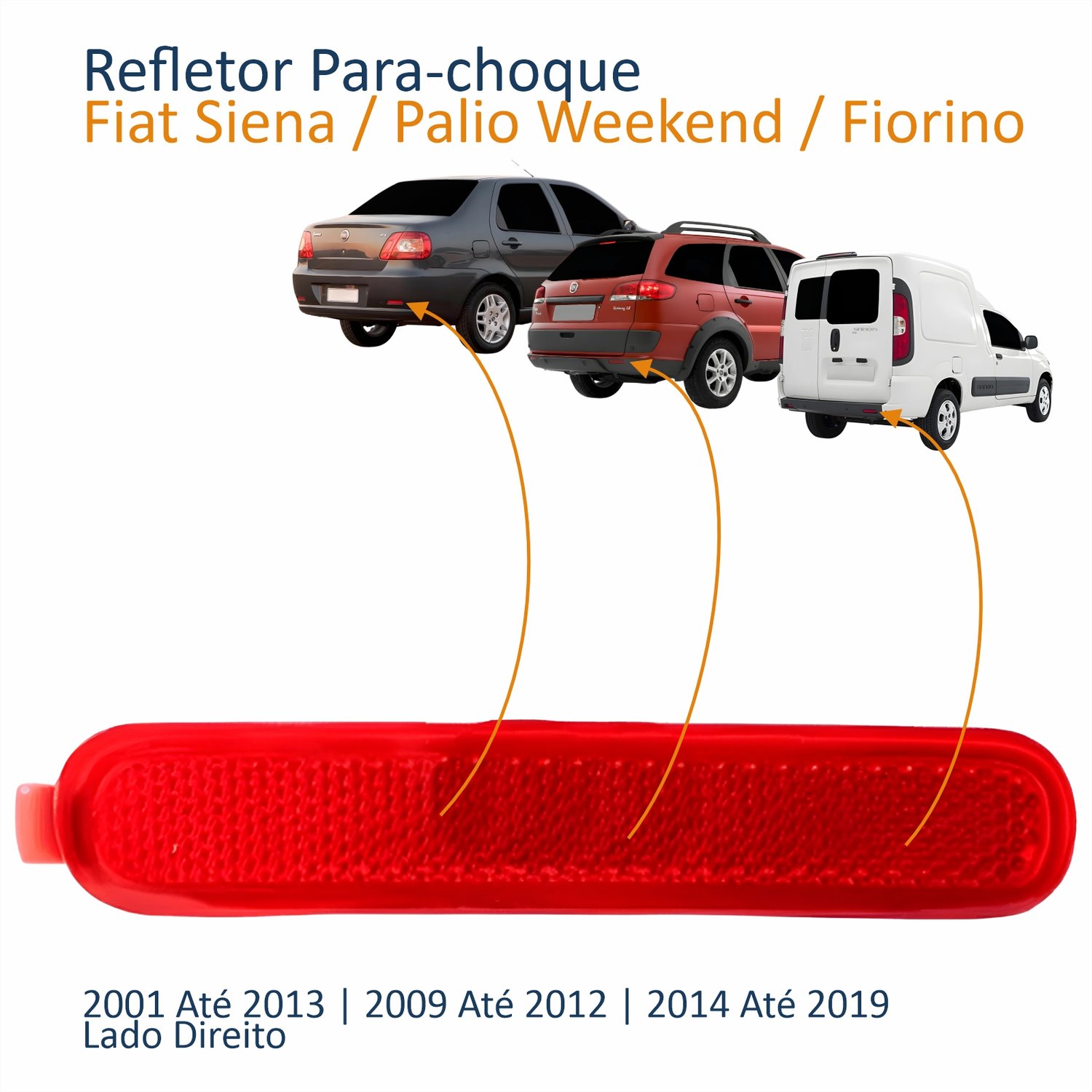 Refletor Traseiro Parachoque Fiat Siena 2001 Até 2013 Palio Weekend 2009 Até 2012 Fiorino 2014 Até 2019 Lado Direito Passageiro