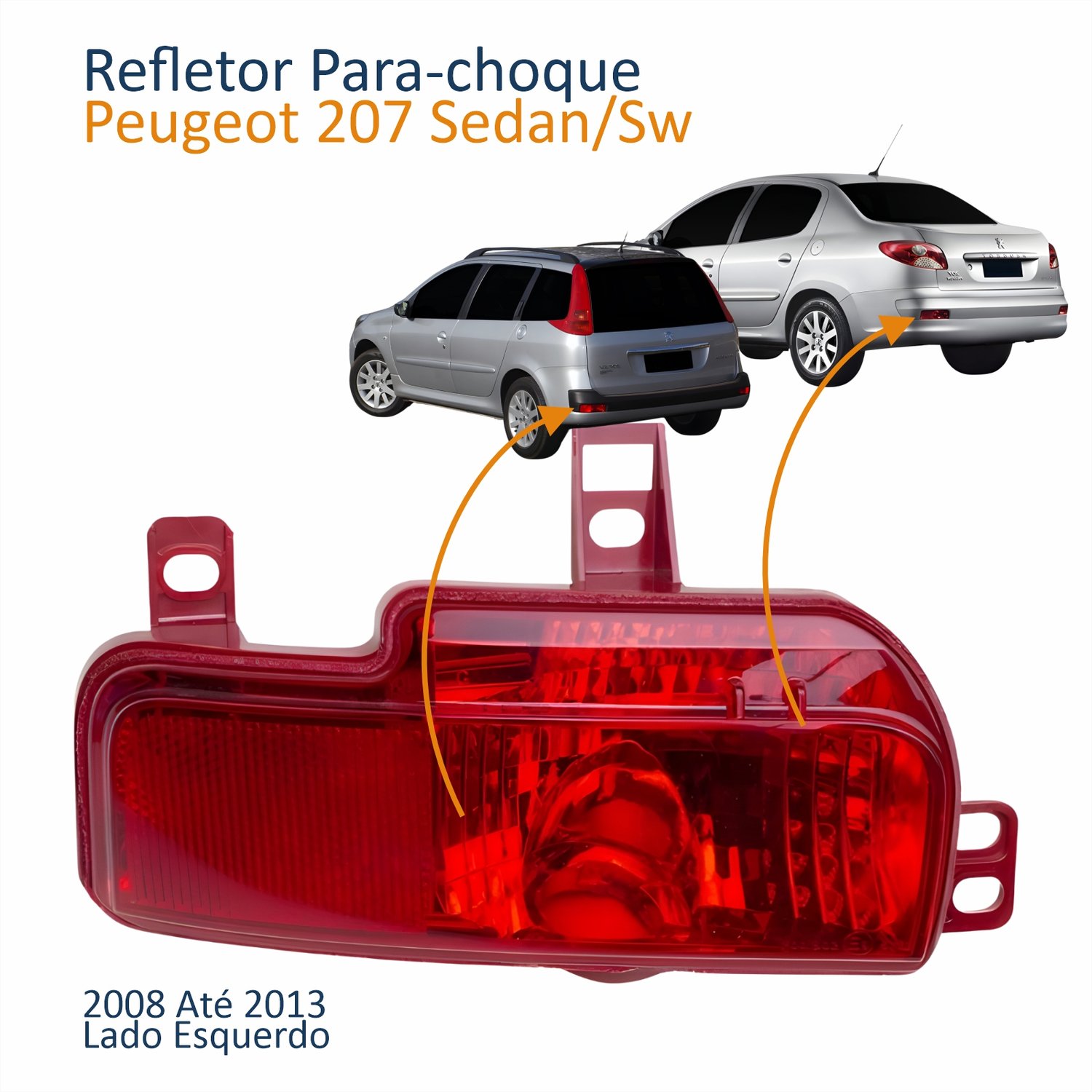 Refletor Traseiro Parachoque Peugeot 207 Sedan Sw 2008 Até 2013 Lado Esquerdo Motorista