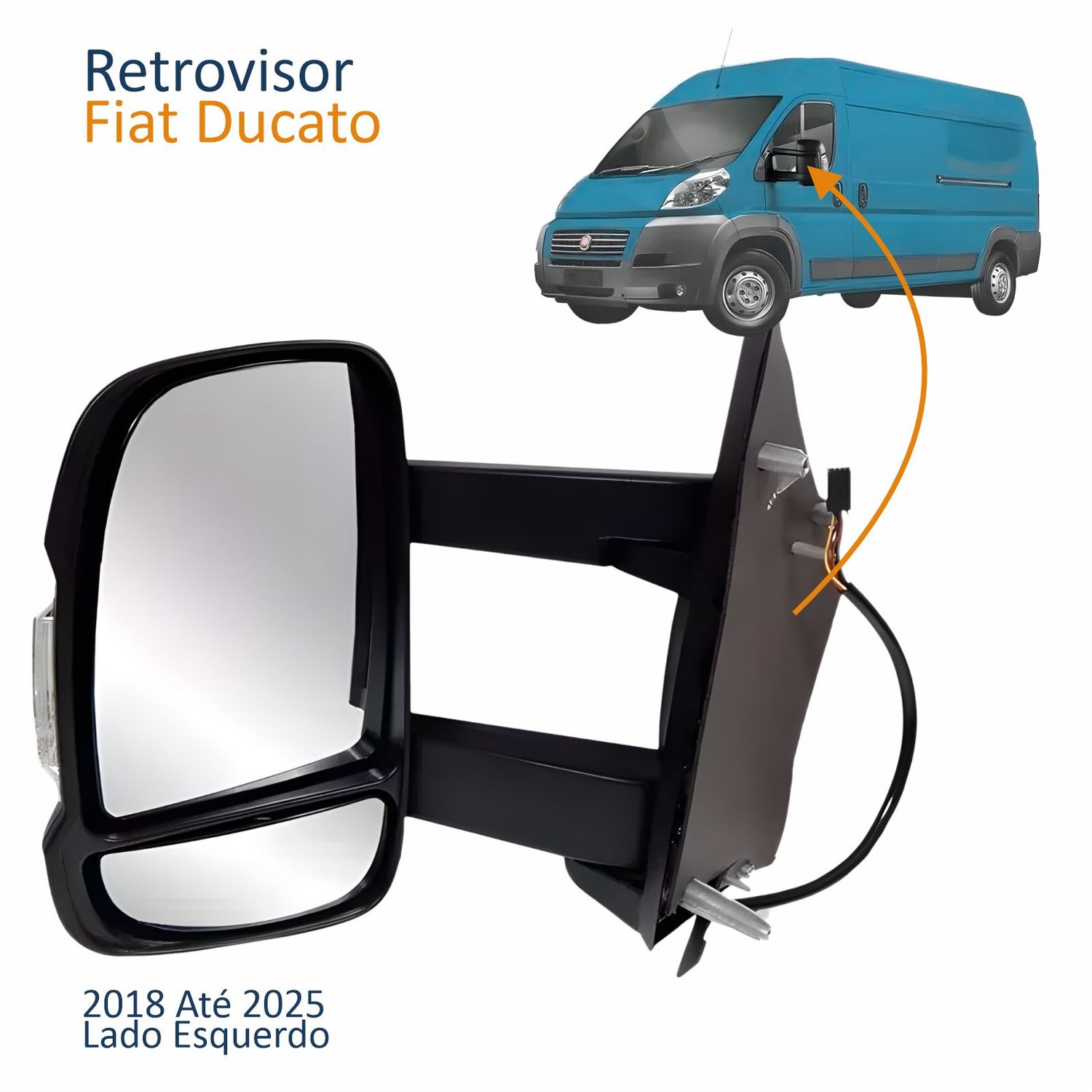 Retrovisor Fiat Ducato 2018 Até 2025 Sem Controle Com Pisca Braço Longo Lado Esquerdo Motorista