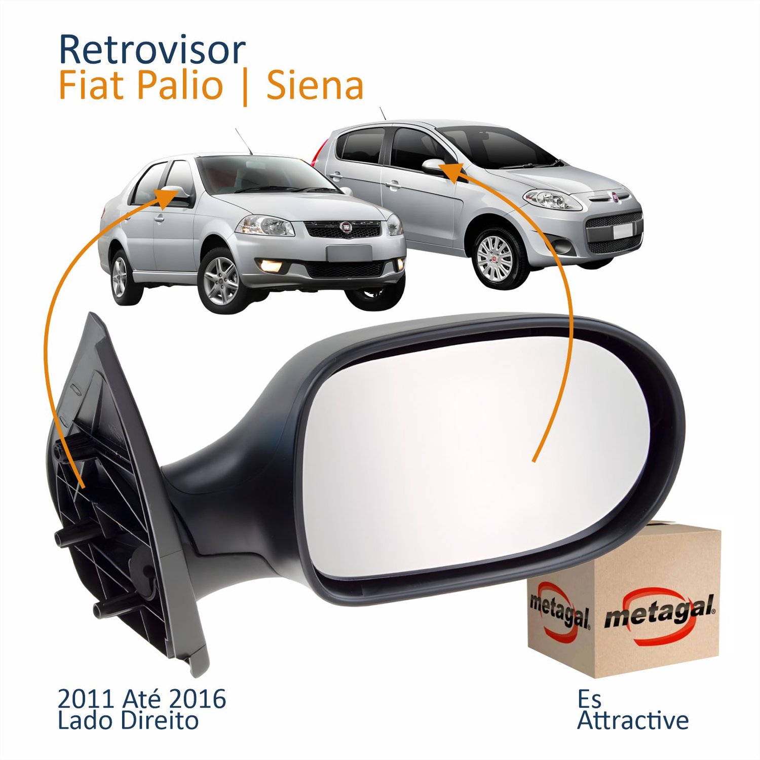 Retrovisor Fiat Palio Siena Es Attractive 2011 Até 2016 4 Portas Sem Controle Lado Direito Passageiro Original