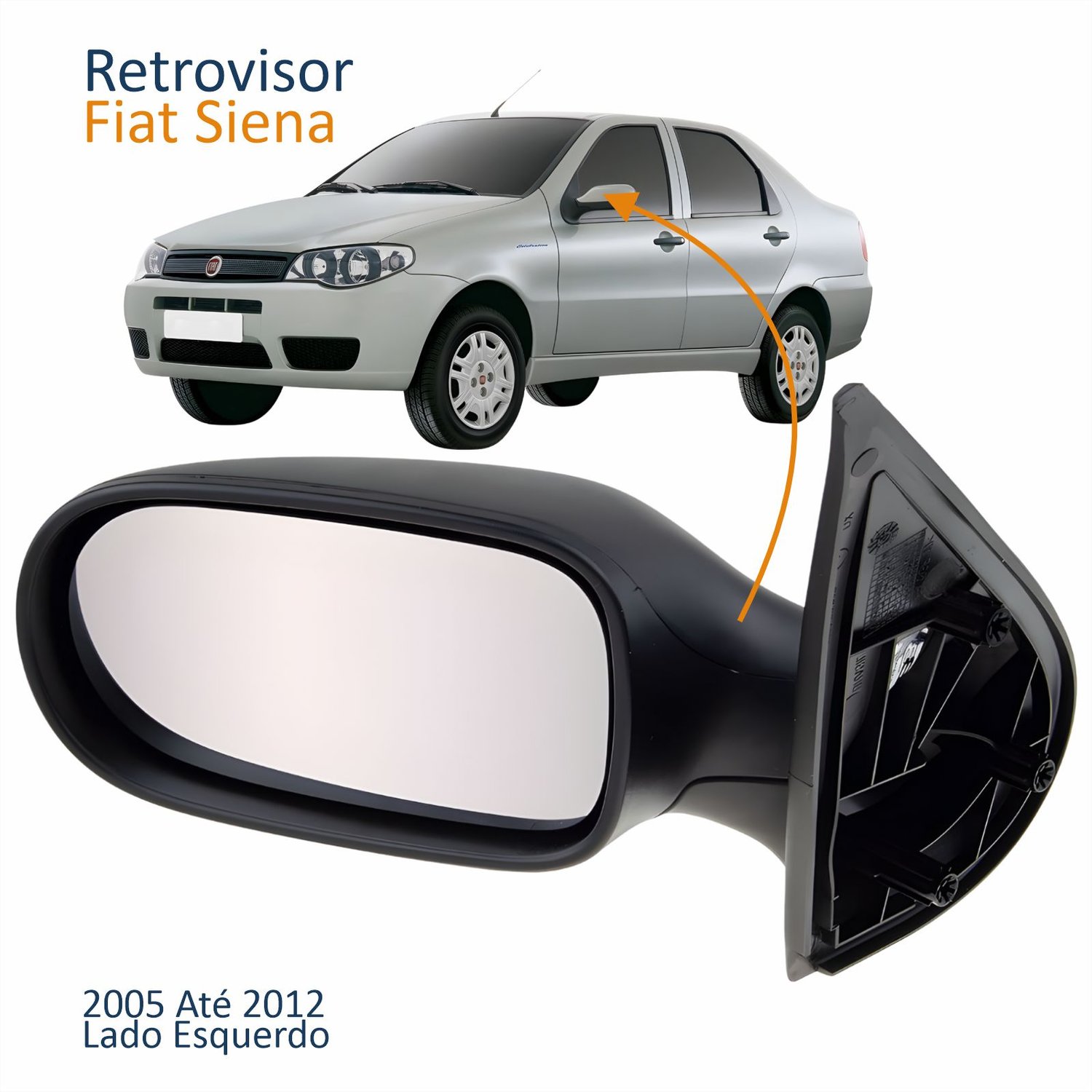 Retrovisor Fiat Palio Weekend 2004 Até 2010 Siena 2005 Até 2012 4 Portas Sem Controle Lado Esquerdo MotoristaLado: Único