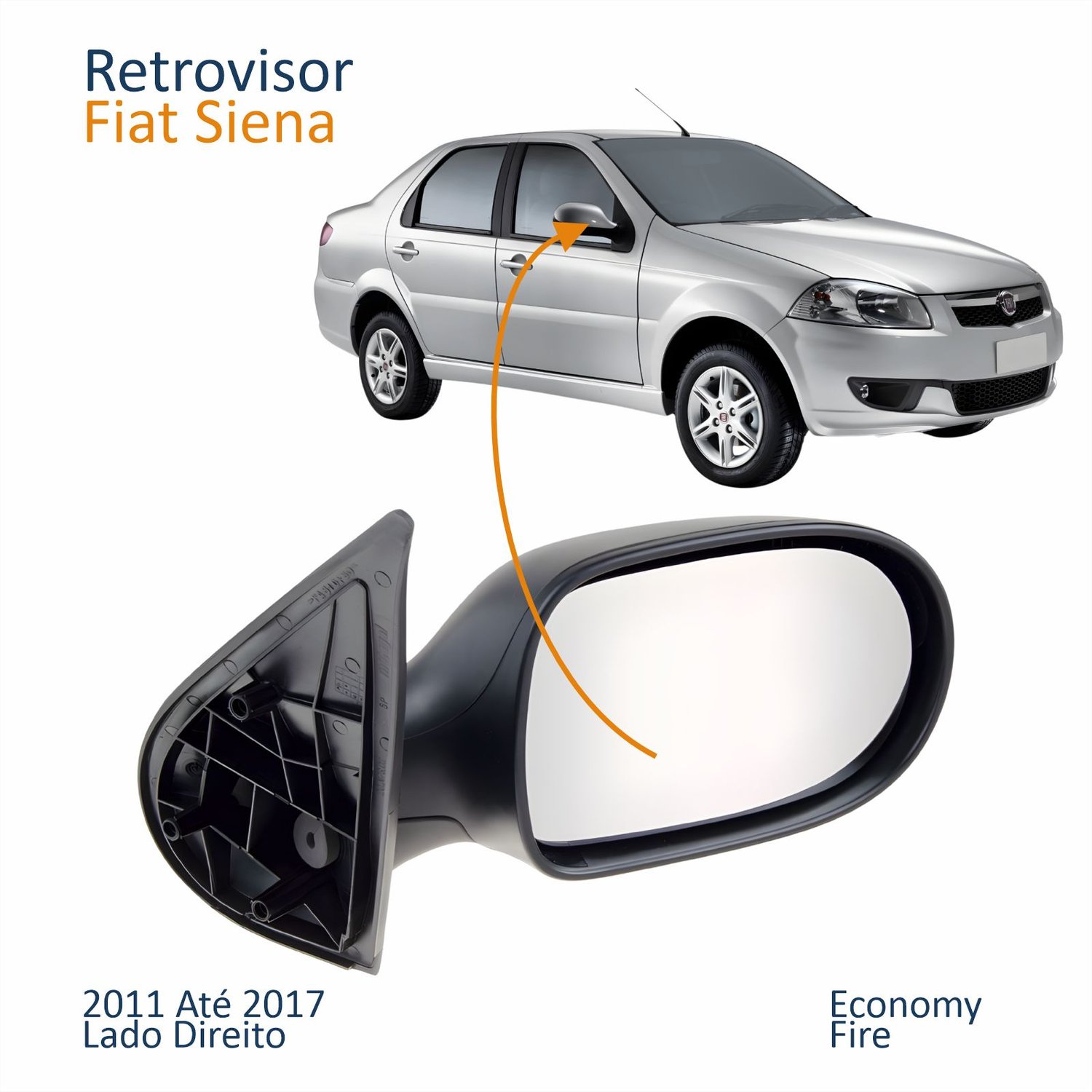 Retrovisor Fiat Siena Economy Fire 2011 Até 2017 4 Portas Sem Controle Lado Direito Passageiro Original