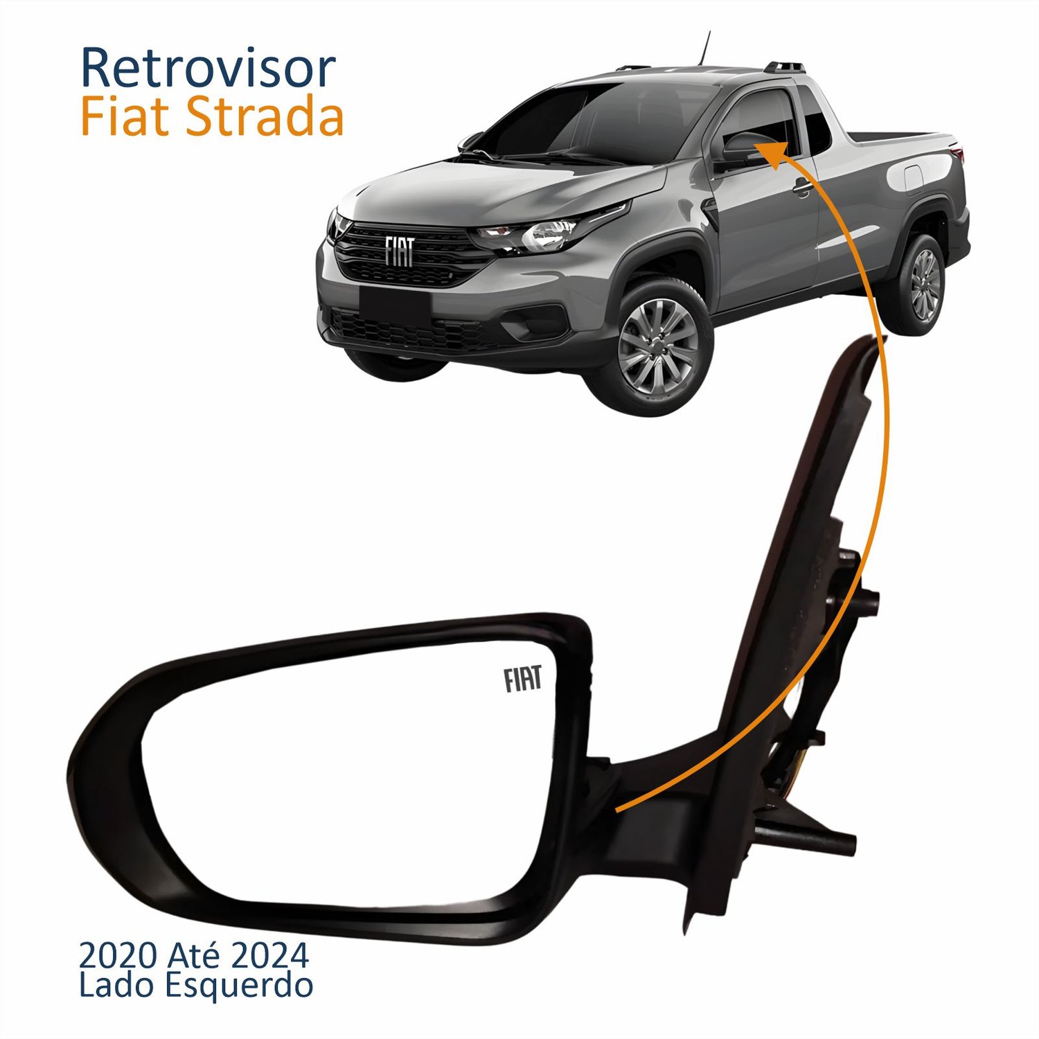Retrovisor Fiat Strada 2020 2021 2022 2023 2024 Elétrico Com Furo Pisca Lado Esquerdo Motorista Original