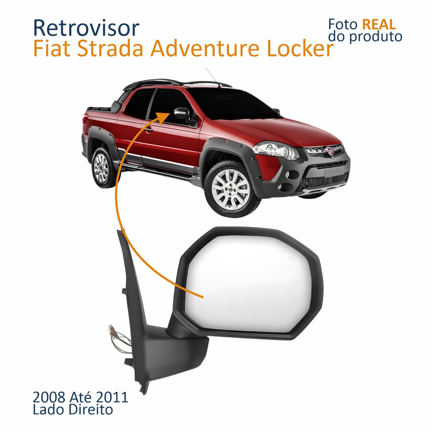 Retrovisor Fiat Strada Adventure Locker 2008 2009 2010 2011 Elétrico Com Pisca Lado Direito Passageiro