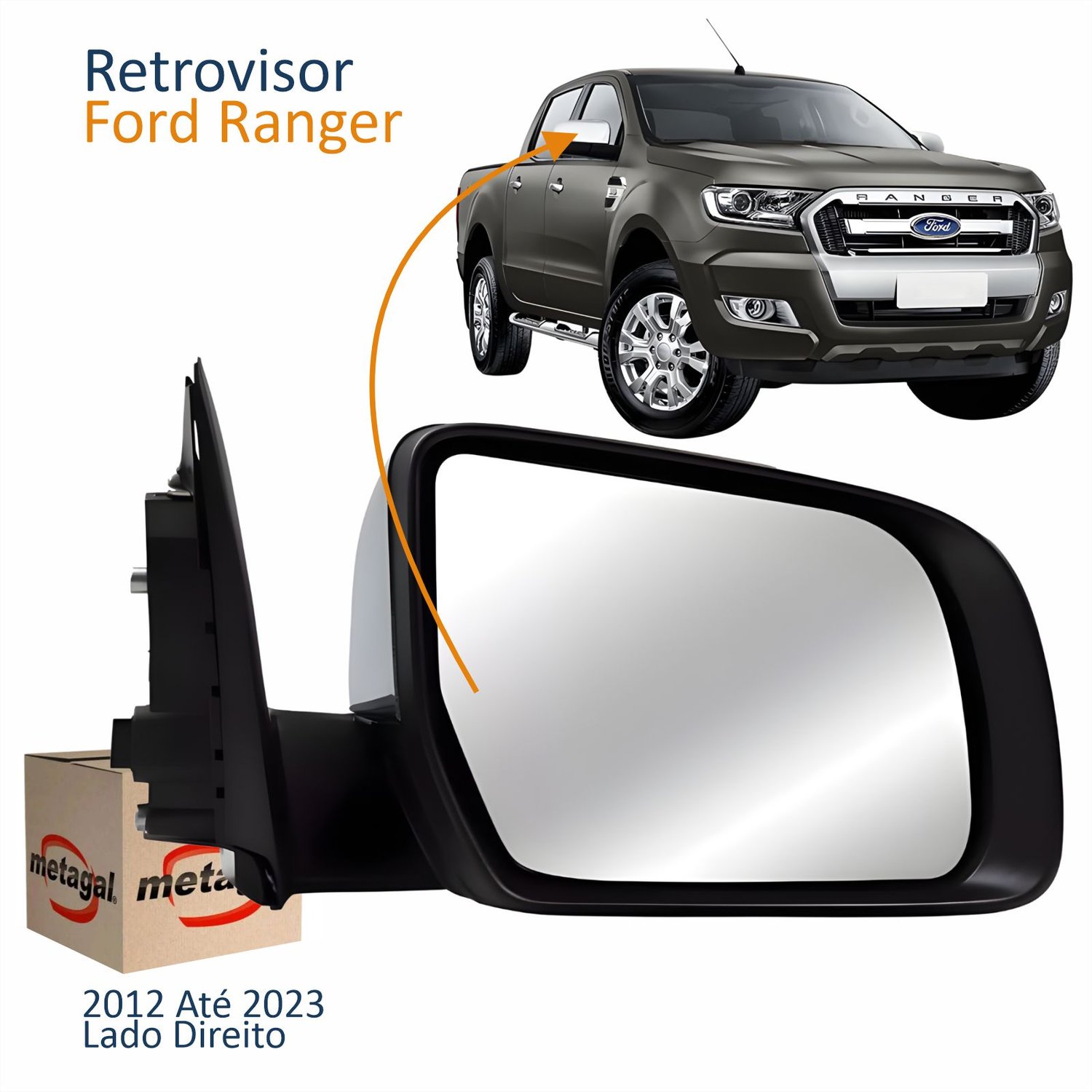 Retrovisor Ford Ranger 2012 Até 2023 Elétrico Com Capa Cromada Lado Direito Passageiro Original