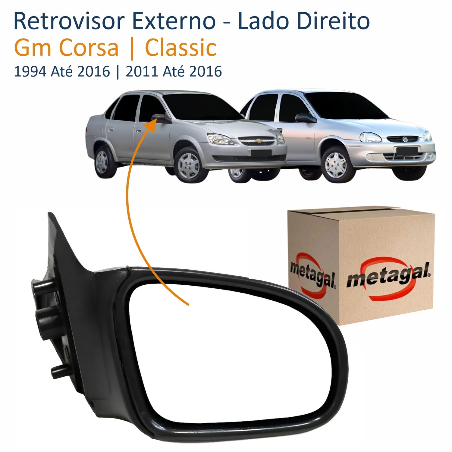 Retrovisor Gm Corsa 1994 Até 2016 Classic 2011 Até 2016 2 4 Portas Sem Controle Lado Direito Passageiro