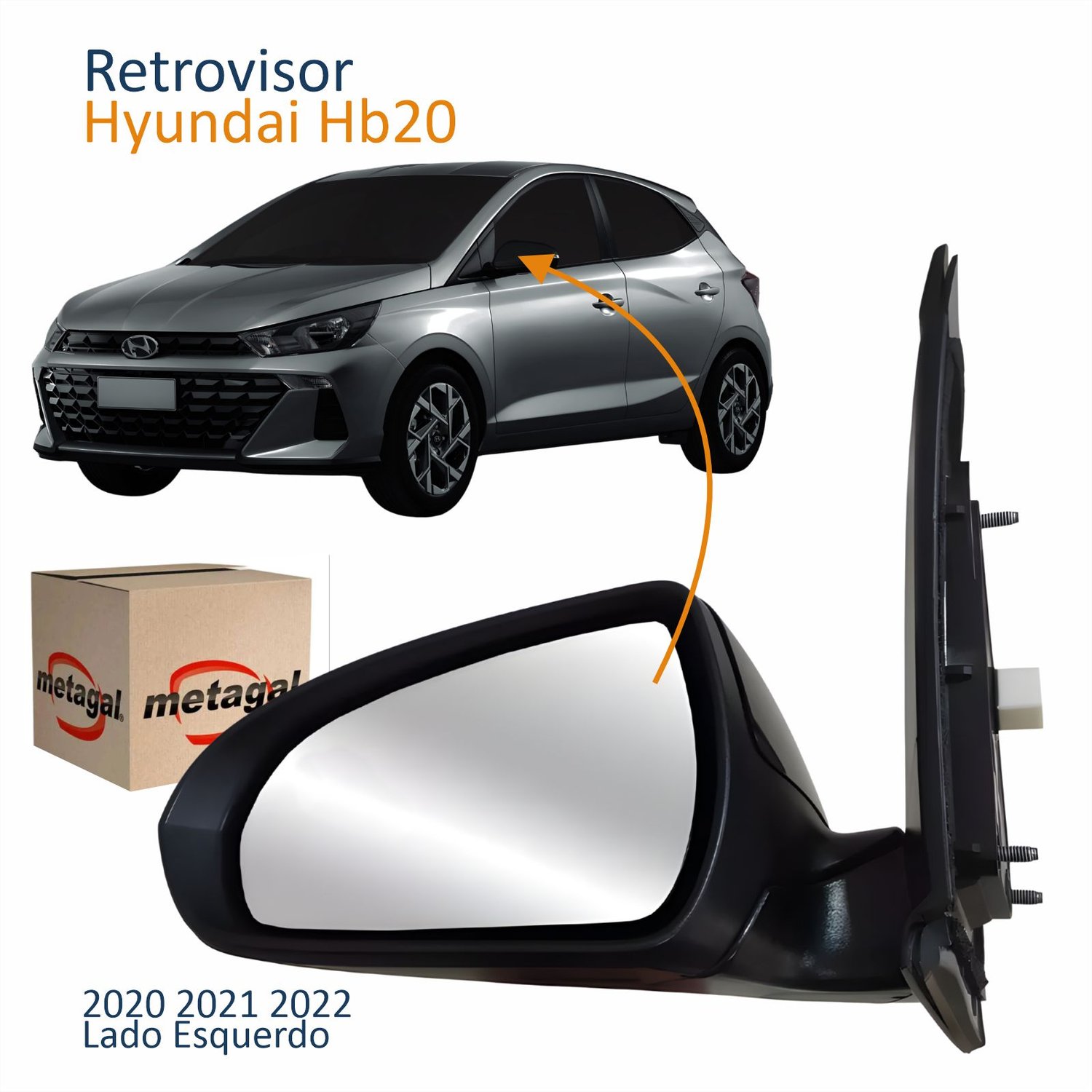 Retrovisor Hyundai Hb20 2020 2021 2022 Elétrico Com Pisca Retrátil Power Fold Lado Esquerdo Motorista Original
