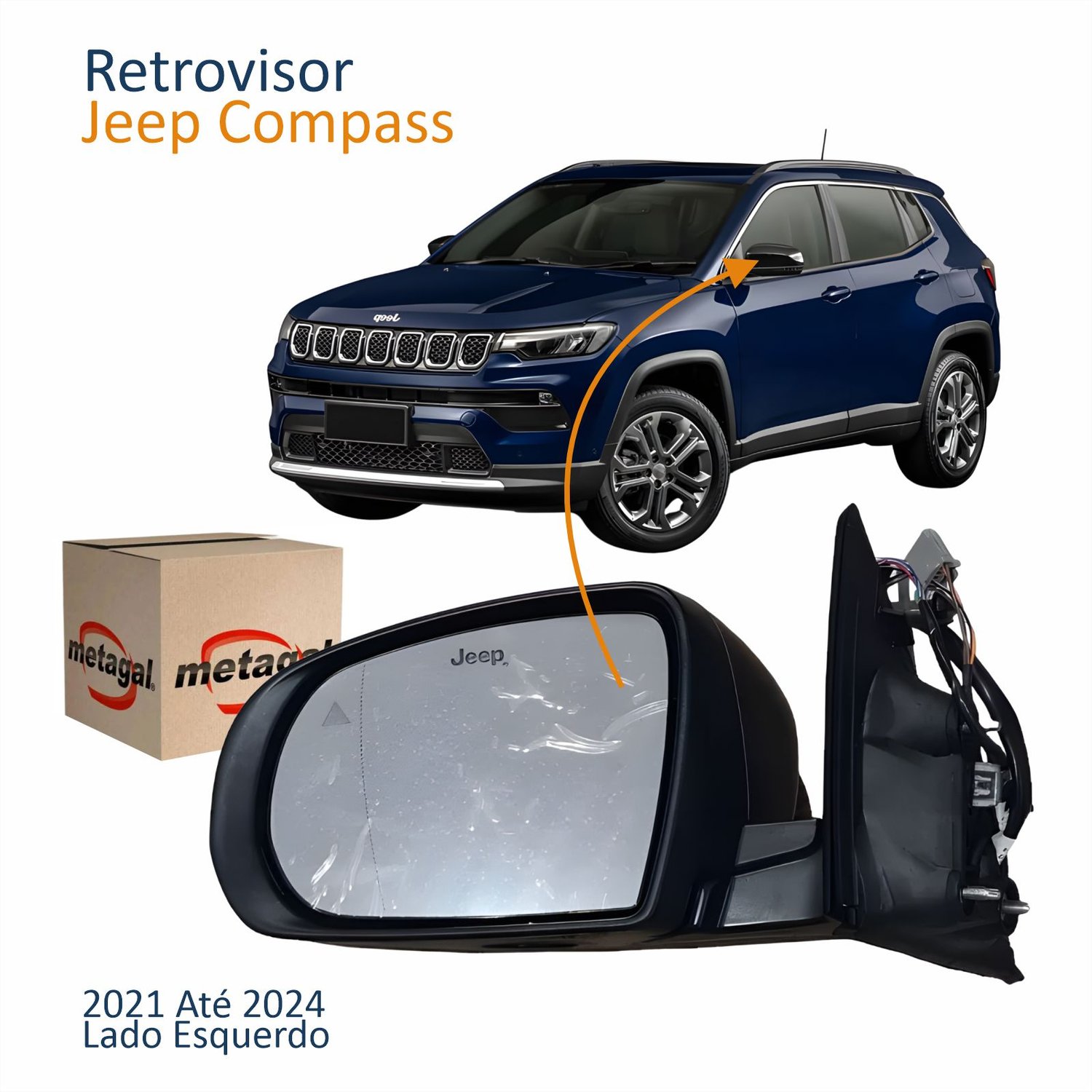 Retrovisor Jeep Compass 2021 2022 2023 2024 Elétrico Com Pisca Cromado Lado Esquerdo Motorista Original