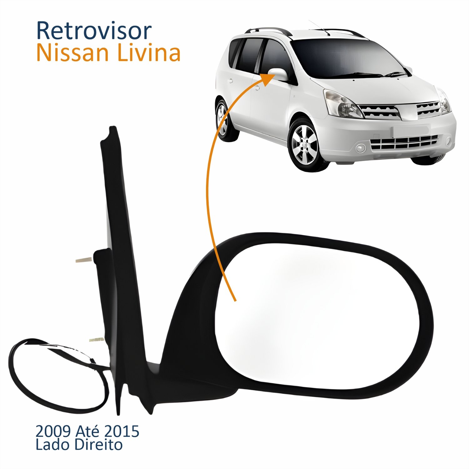 Retrovisor Nissan Livina 2009 Até 2015 Elétrico Capa Lisa Lado Direito Passageiro