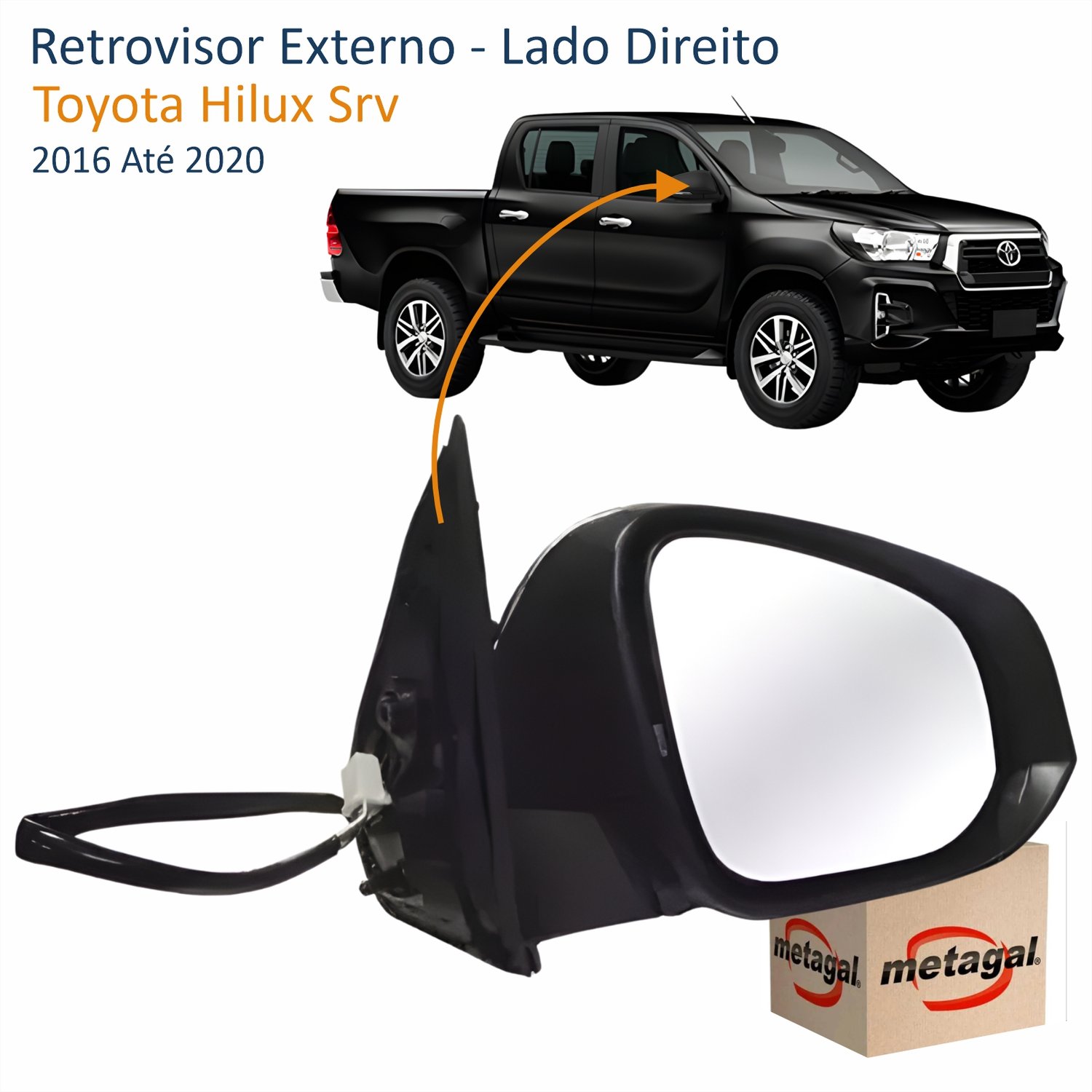 Retrovisor Toyota Hilux Srv 2016 Até 2020 Elétrico Com Pisca Lado Direito Passageiro