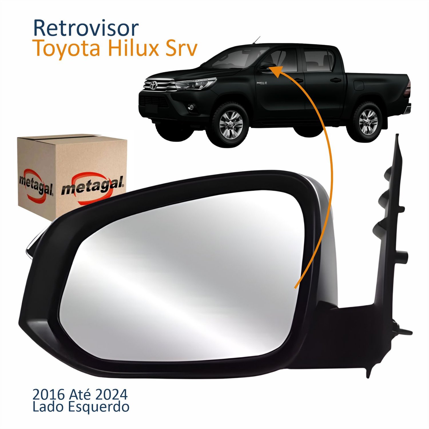 Retrovisor Toyota Hilux Srv 2016 Até 2024 Elétrico Com Pisca Lado Esquerdo Motorista Original