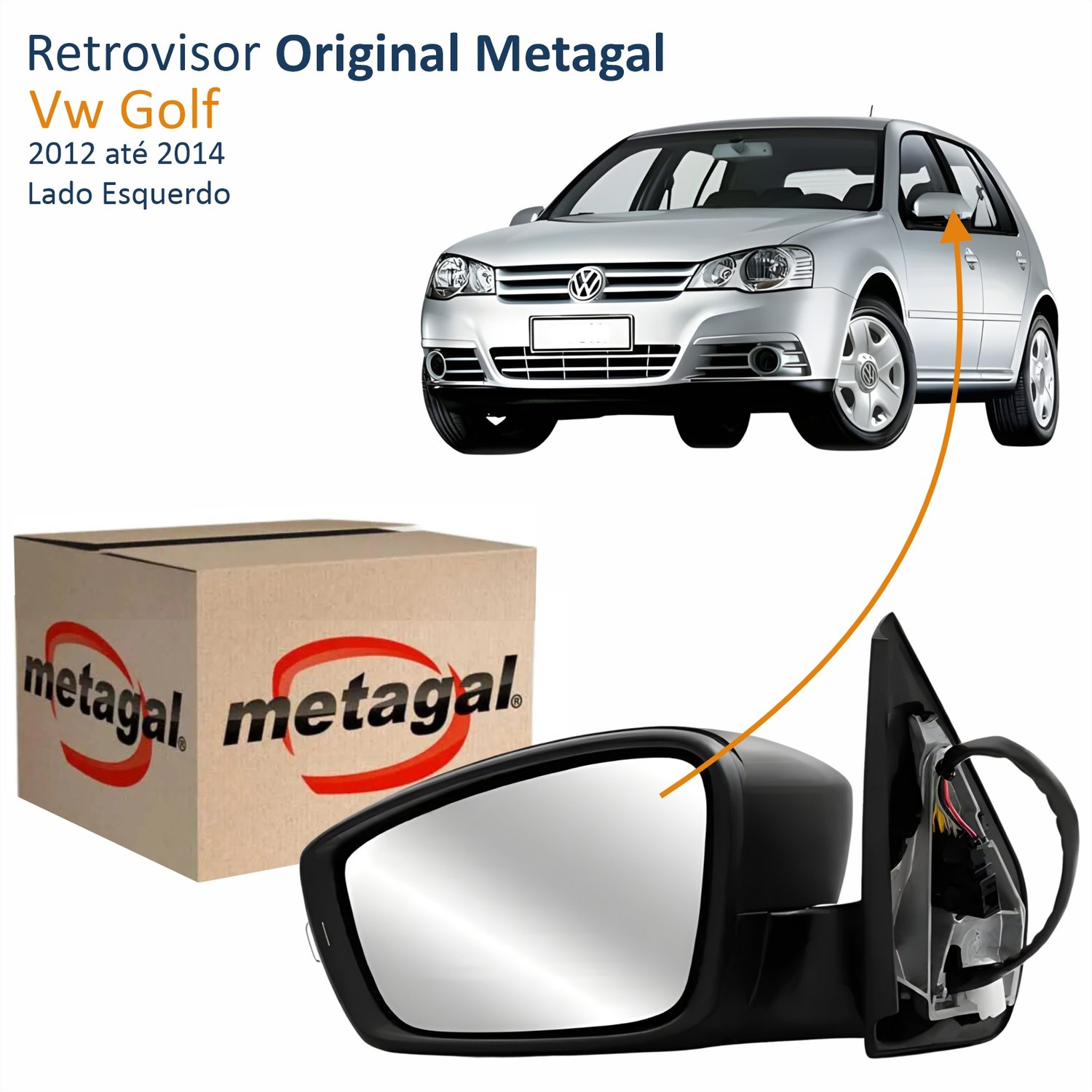 Retrovisor Vw Golf 2012 2013 2014 Original Metagal Elétrico Com Pisca Lado Esquerdo Motorista