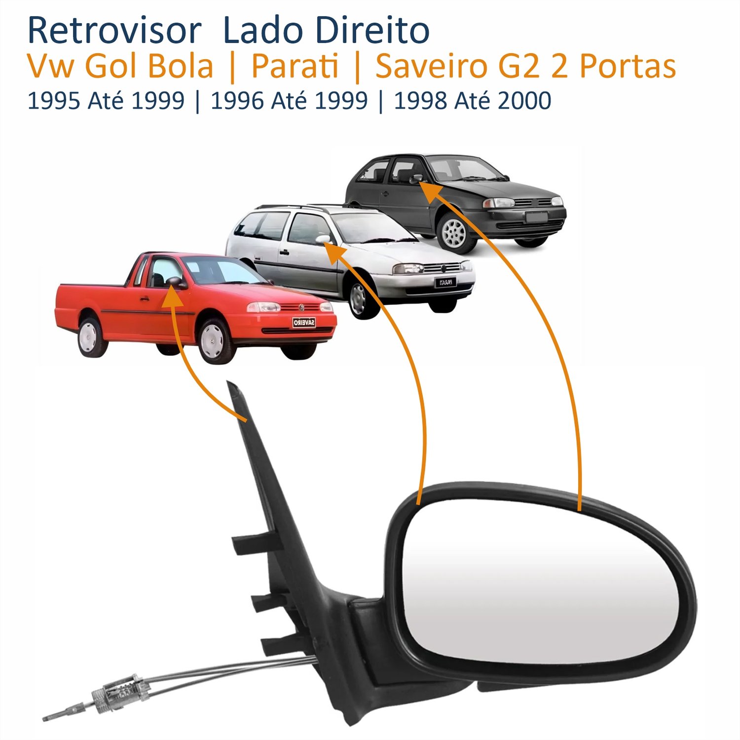 Retrovisor Vw Saveiro Parati Gol Bola G2 2 Portas 1995 Até 2000 Com Controle Lado Direito Passageiro